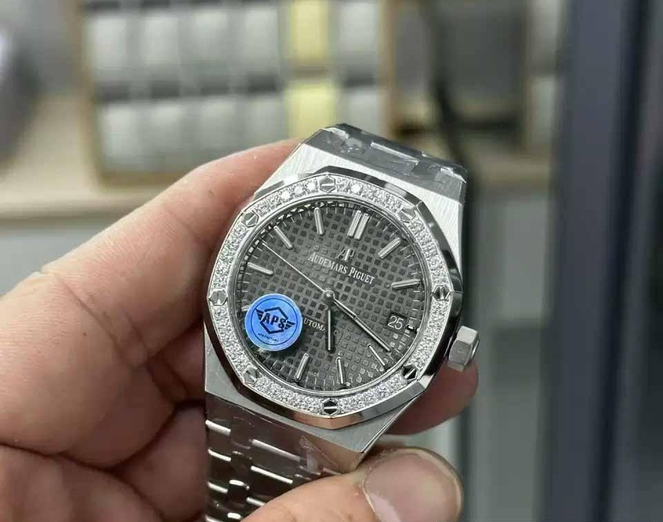 Latest replica version of Audemars Piguet 15451ST. The best rated version today from the APS factory. With stones are swarovski stones. In addition. you can optionally attach diamonds or moissanite.
