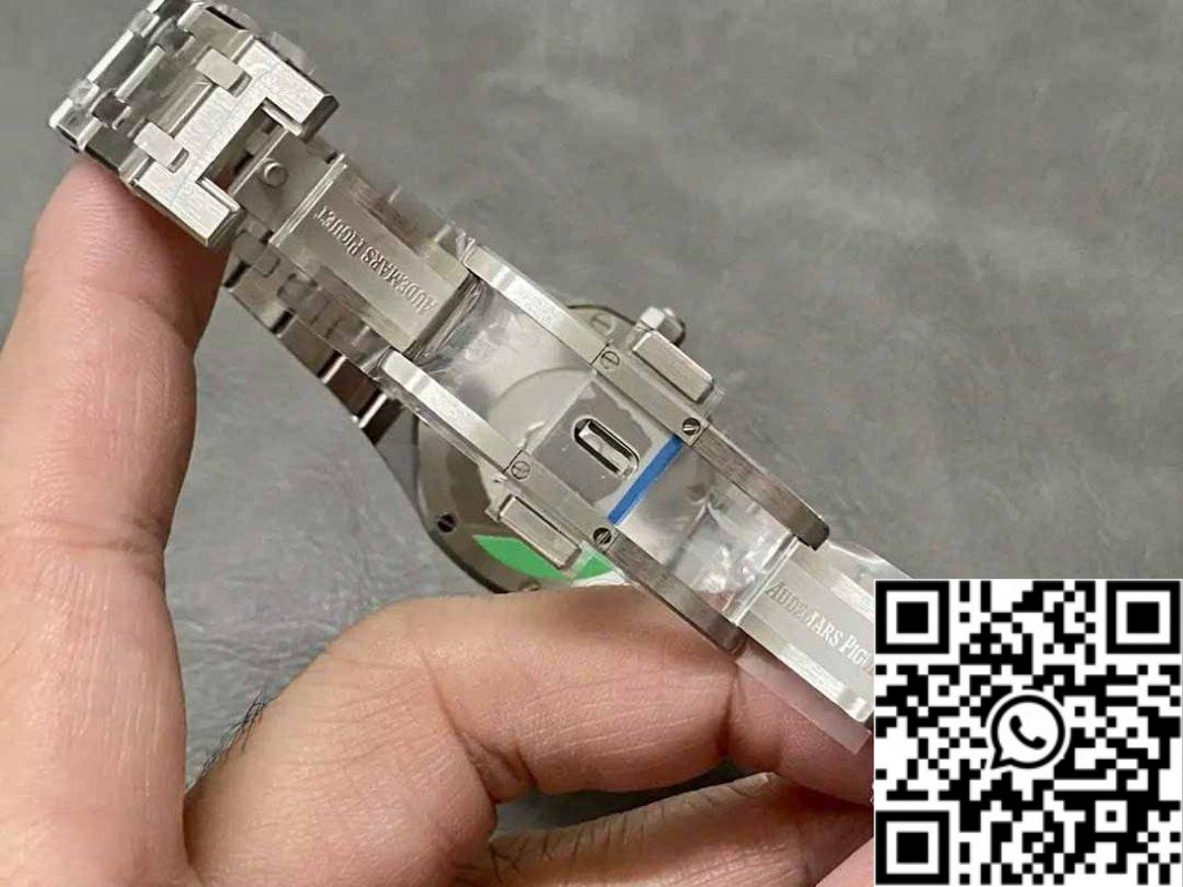 The watch has a closed case back. engraved with the Royal Oak series name. It is powered by a Swiss ETA quartz movement. ensuring accurate timekeeping!